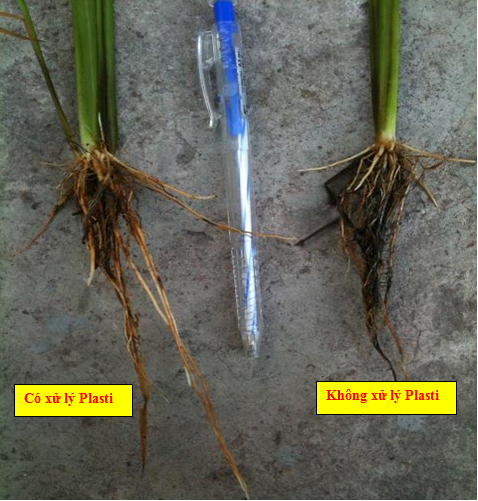 • Nền đất trên ruộng bị phèn rễ vẫn phát triển, đặc biệt rễ trắng ra khỏe và dài hơn so với không phun Plastimula 1SL, đây là điều kiện giúp cây lúa hấp thu tốt chất dinh dưỡng .