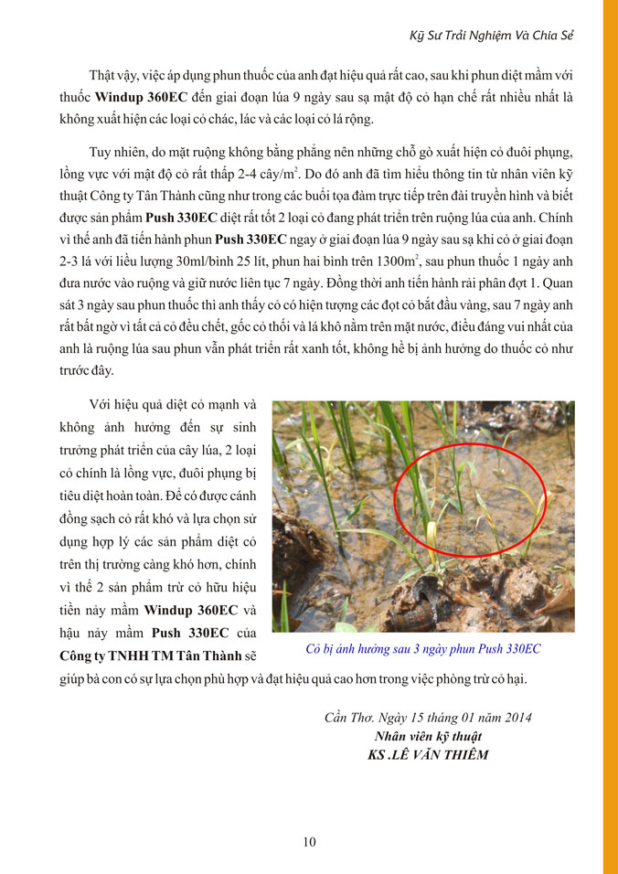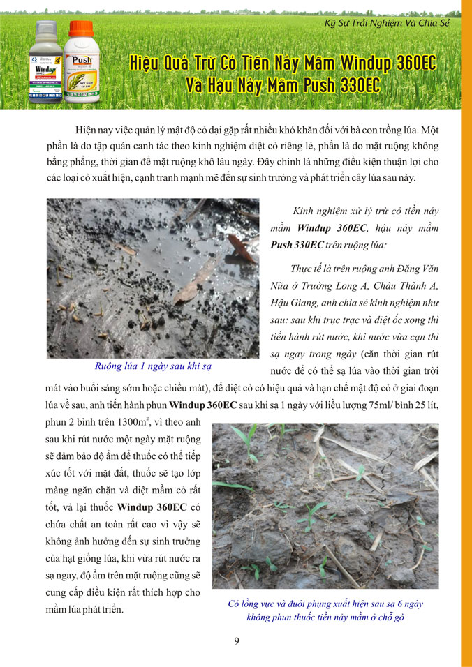 Hiệu quả trừ cỏ tiền nảy mầm WINDUP 360EC và hậu nảy mầm PUSH 330EC
