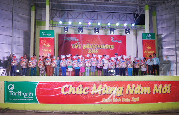 100 boxes of gifts were given to people in all hamlets throughout the district. Every 300000VND box of gift included: sweets, candies, coffee and soft drinks, etc. These meaningful gifts were wrapped by Tan Thanh employees and carried kind hearts in it.